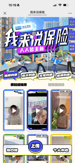 瑞众保险此次“我来说保险”系列活动自2024年12月起,将持续至2025年3月底。活动形式丰富多样,活动专属H5“我来说保险”同步上线,用户可上传自己的原创内容,包括视频、图片、文字和音频四种类型。无论是展示对保险的理解、分享保险小知识,还是用图片讲述保险故事、撰写保险短文,甚至是录制对保险的见解,都能在这个平台上找到属于自己的舞台。