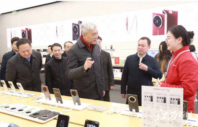 华润万象城是赣州市城区最繁华的购物中心。尹弘走进华润万家超市,现场察看商品供应情况,不时与顾客交谈。他说,“菜篮子”“米袋子”“果盘子”是民生大事,要根据节日供求特点组织好产销衔接,加强对肉类、蔬菜、水果等群众生活必需品的市场监督管理,让群众买得放心、吃得安心。以旧换新加力扩围,补贴范围从家电、汽车向手机、平板、智能穿戴等日常消费电子领域扩充。尹弘走进华为专卖店,了解产品销售情况,鼓励抢抓国家消费补贴政策机遇,创新多元化消费场景,提供丰富优质的消费供给,促进消费市场更加活跃。