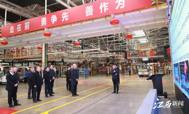 360多台机械臂翻转挥舞、AGV小车来回穿梭、全自动化实现车身焊接……江铃股份富山工厂生产车间内,热火朝天的生产场景扑面而来。尹弘考察了焊接车间和总装车间,饶有兴致地参观汽车产品,鼓励江铃集团顺应汽车产业电动化、智能化、网联化发展趋势,加快转型升级,强化产品创新,积极抢占城市物流、冷链配送等细分领域市场,在日益激烈的行业竞争中构筑发展新优势。尹弘听取了江铃集团生产经营情况介绍,希望充分发挥江西汽车龙头企业作用,进一步打响品牌、拓展市场,持续提升创新能力和综合实力,引领带动我省汽车产业高质量发展。