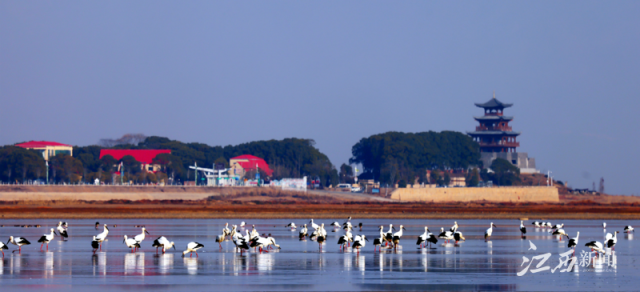 除夕当天,鄱阳湖候鸟在湖区觅食。