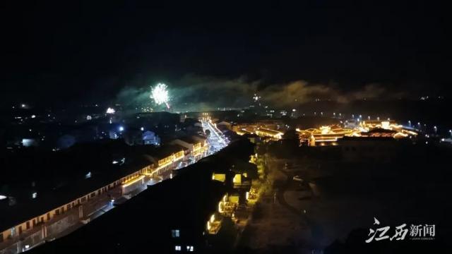 站在吴城站观鸟台,可以看到吴城镇的除夕夜景。