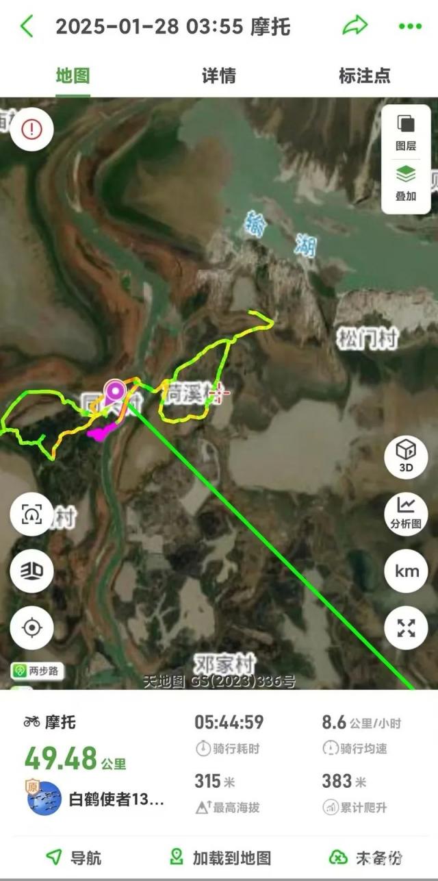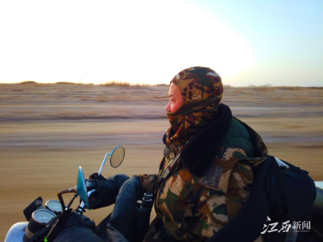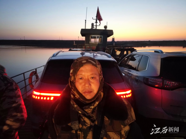 1月28日(除夕)5时,王小龙早早起床。顶着刺骨寒风,王小龙骑着摩托车来到荷溪渡口乘坐第一渡轮过江,他要去吴城站管辖范围内的中湖池、梅西湖进行巡护。因为要在湖区观测远方的候鸟,他带上了望远镜;考虑到湖区的路比较泥泞,他换上了迷彩服和雨靴。