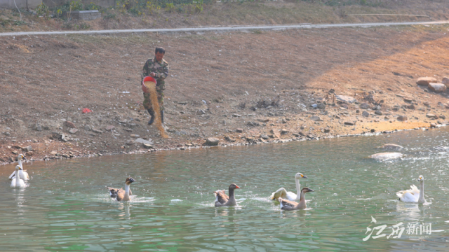 “人要过年,候鸟也要过大年嘛!”除夕这一天,王小龙给候鸟们准备了“大餐”——稻谷、玉米、小鱼。看着这些鄱阳湖的大宝贝们争先恐后地抢食,他的脸上露出了开心的笑容。39年了,在鄱阳湖与候鸟朝夕相处的这些日子,成为他人生最珍贵的记忆。