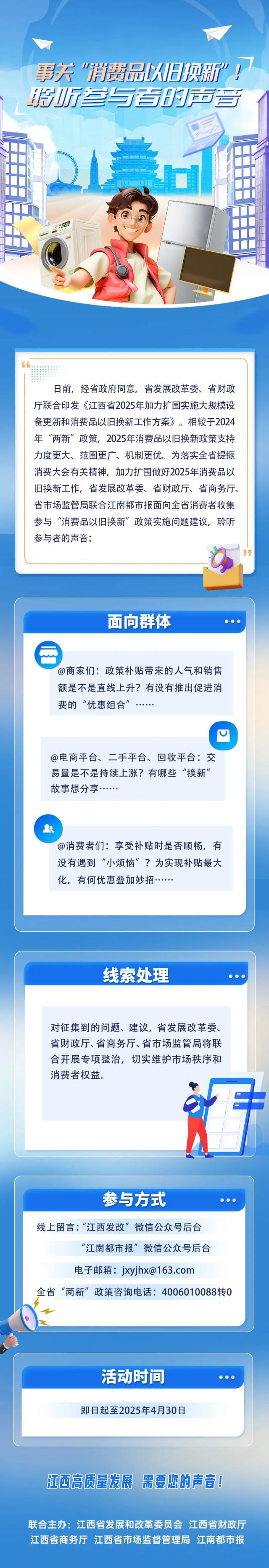 2025年消费品以旧换新政策实施问题建议征集行动。