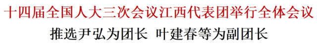 尹弘强调,要着力提升审议讨论和代表建议质量,紧扣大会主题,充分发扬民主,深入讨论、畅所欲言,严谨细致审议好各项报告和法律,提出针对性强、含金量高的议案和建议,让审议讨论的过程真正成为集思广益、凝聚智慧、推动发展的过程。要进一步严肃会风会纪,严格落实中央八项规定及其实施细则精神,自觉遵守改进会风会纪的各项规定要求,以饱满的精神状态参会履职,切实维护江西代表团的良好形象。要坚持正确舆论导向,围绕坚持团结稳定鼓劲和正面宣传为主的方针,扎实做好新闻报道和舆论引导工作,加力推出一批高质量的宣传报道,讲好中国故事、江西故事,为会议的圆满成功营造良好的舆论氛围。