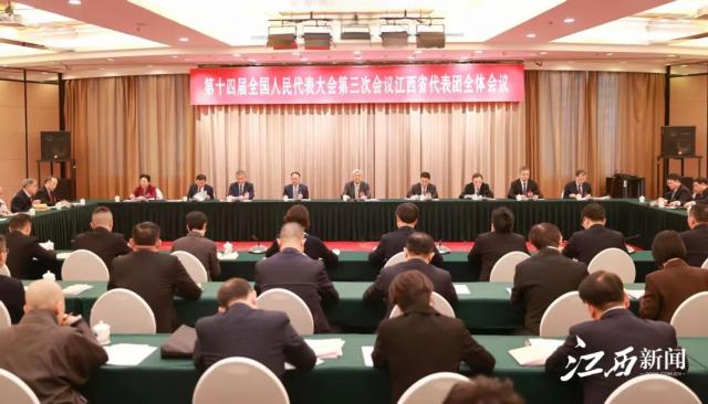 3月3日下午,十四届全国人大三次会议江西代表团在北京住地举行全体会议。