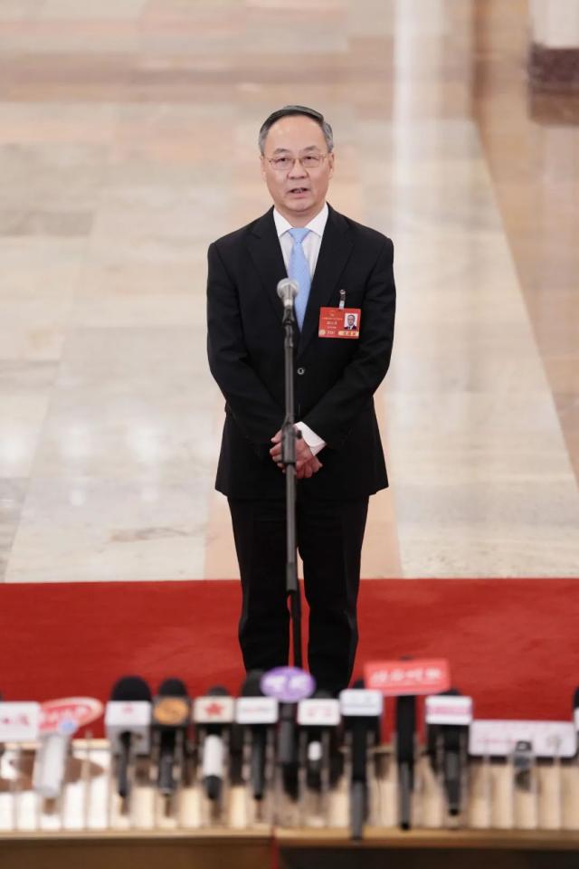 3月5日,第十四届全国人民代表大会第三次会议首场“部长通道”集中采访活动在北京人民大会堂举行。这是教育部部长怀进鹏接受媒体采访。新华社记者 陈晔华摄
