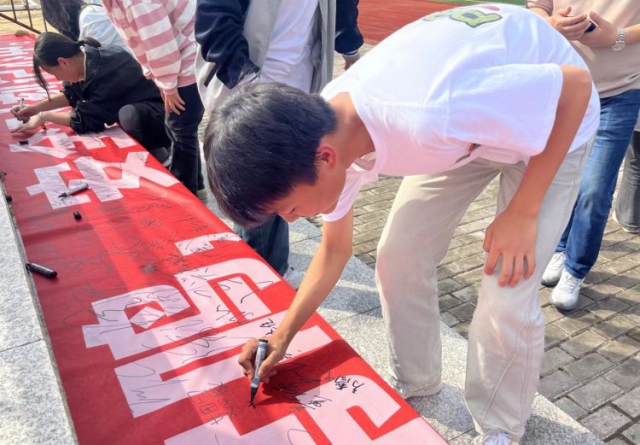 紧接着,全体师生在校团委书记陈光文的带领下,举右手握拳放于右耳旁,用响亮的声音庄严宣誓。随后,举行全体师生签字仪式。全体师生在横幅上郑重地签下自己的名字,表明严格遵守防溺水“六不”原则的坚定决心。