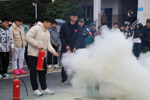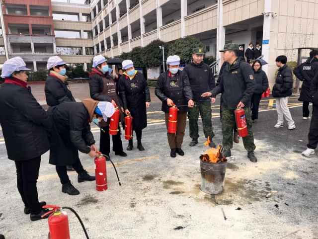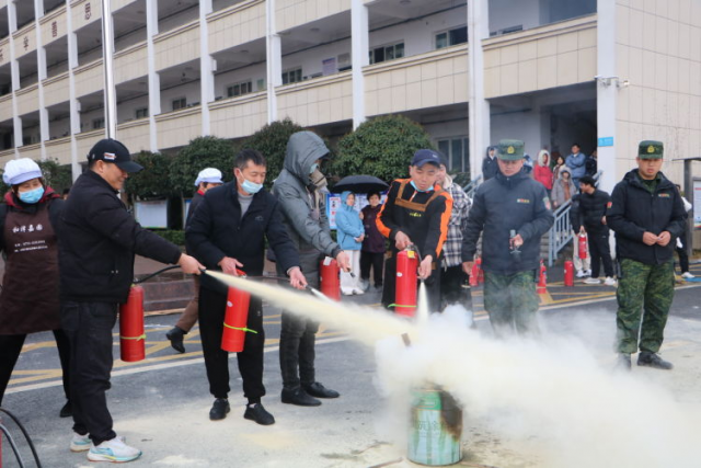 消防演练结束后,该校学工处主任赵岳鹏、驻校教官对灭火器的使用方法进行了讲解,学生代表、家长代表、食堂工作人员及宿管人员现场操作了灭火器的使用。