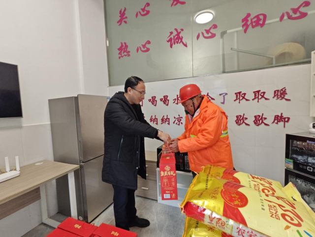 2月7日,上饶市万年县总工会在爱心驿站走访慰问城管局一线职工和环卫工人,县总工会副主席王卫国、兼职副主席王聪参加走访。