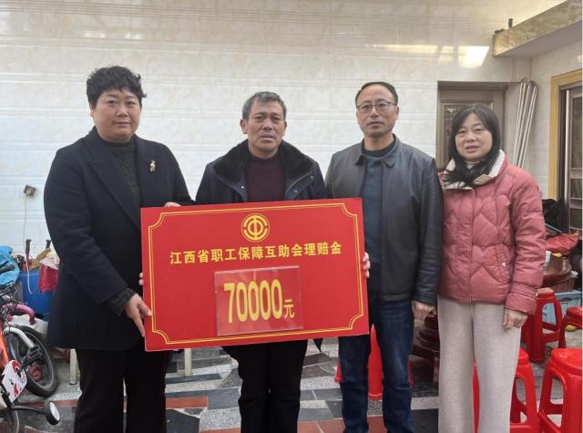 12月1日上午,上饶市总工会党组成员、经审会主任祝丽萍专程赴万年县走访慰问一出险职工家属,送去7万元职保理赔金,在寒冷的冬季带去了“娘家人”的温暖。
