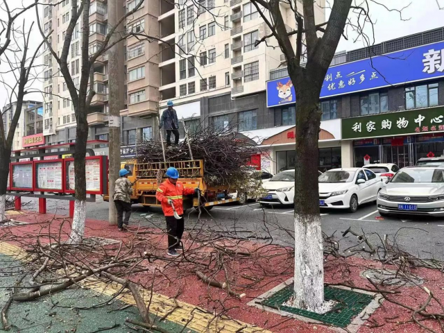 3月13日,由社区联系的市供电公司委派专业人员及高空作业车辆现场操作,利用切割工具将枯死、重叠、交叉等过高的枝丫进行修割,社区工作人员及时通知公共区域停放车辆及时离开并组织人员在周边进行安全防护,保障行人、车辆的安全通行不受影响。市环卫局及小区物业保洁人员随即对修剪下来的树枝垃圾等进行清理清运,确保环境卫生整洁。