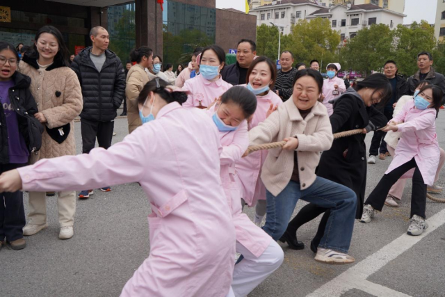 为庆祝“三八妇女节”,增进医护之间的友谊,增强妇女同胞的体质,3月7日下午,乐平市人民医院举行庆祝“三八妇女节”拔河比赛。