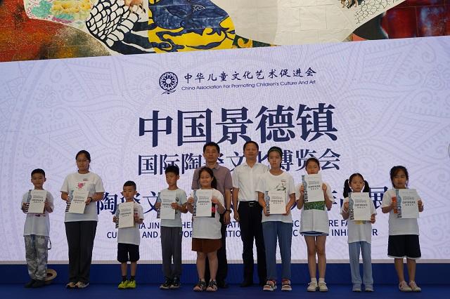 7月17日上午,为期一个月的“陶瓷文化艺术小传人”暑期展在景德镇陶博城国际陶瓷博览中心正式开幕。中共景德镇市委宣传部副部长程步才,景德镇市教育体育局副局长李洪涛,中共景德镇市昌江区委常委、宣传部部长汪德胜,中国陶瓷艺术大师、景德镇中国轻工业陶瓷研究所研究员张吟玲,原景德镇市新闻传媒集团董事长李新华,景德镇市国信城市运营发展有限公司董事长余伟,中华儿童文化艺术促进会陶修项目办公室主任潘璇等嘉宾出席了开幕式并为小作者颁发参展证书。