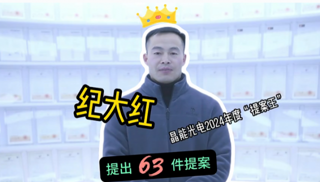 我是纪大红,晶能光电设备工程师,爱学习爱钻研的蓝领一枚,以63件有效提案,荣获企业2024“年度提案王”。