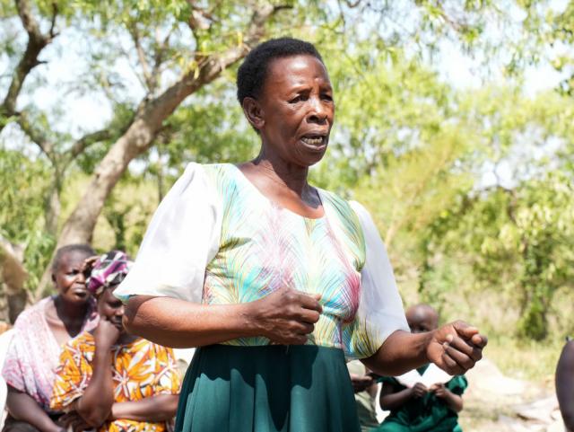 2025年2月19日,在肯尼亚霍马湾潭约卡社区,潭约卡社区代理秘书埃尔莎·安扬戈介绍社区情况。新华社记者李亚辉摄
