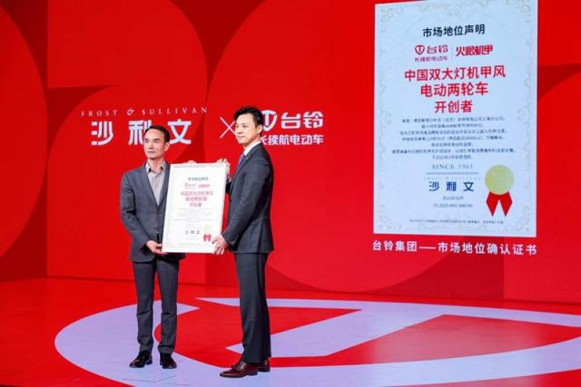 发布会上,全球增长咨询公司沙利文为台铃颁发了“中国双大灯机甲风两轮电动车开创者”认证书。沙利文大中华区合伙人兼董事总经理杨晓骋在发言时说道:“当下行业仿冒乱象依然存在,我们呼吁广大企业坚持原创,像台铃一样持续探索产品造型与技术方面的创新。”