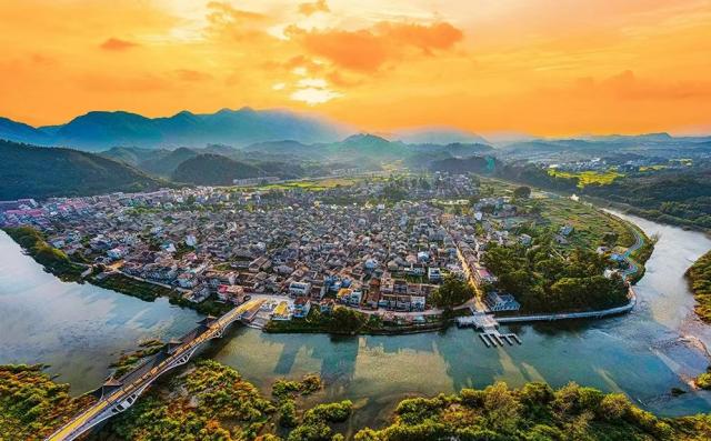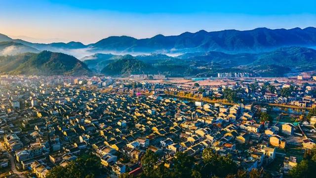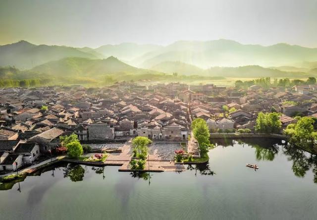 青山环抱、江水环绕的流坑古村。(欧阳顺摄)