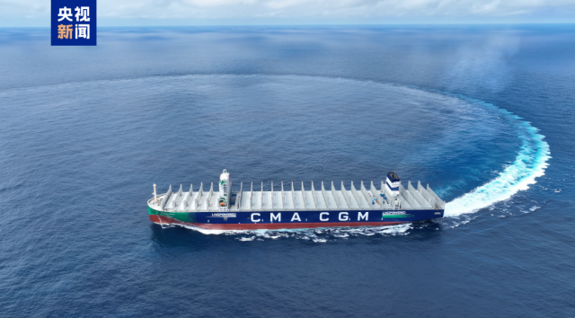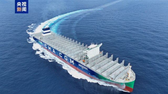 今天交付的全球最大双燃料动力集装箱船一次可承载22万吨货物,24000个左右的集装箱堆叠高度相当于25层楼,被称为海上“超级带货王”。同时,这型船还采用了绿色燃料——液化天然气作为动力,可为船舶提供单个航次近2万海里的超远续航。