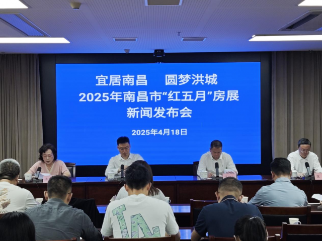 2025年4月18日,“宜居南昌圆梦洪城”2025年南昌市“红五月”房展活动新闻发布会隆重召开。市住建局开发科科长吁榕、红谷滩住建局副局长钱劲松、市房协秘书长李竞红出席发布会,各大媒体代表到场参加。