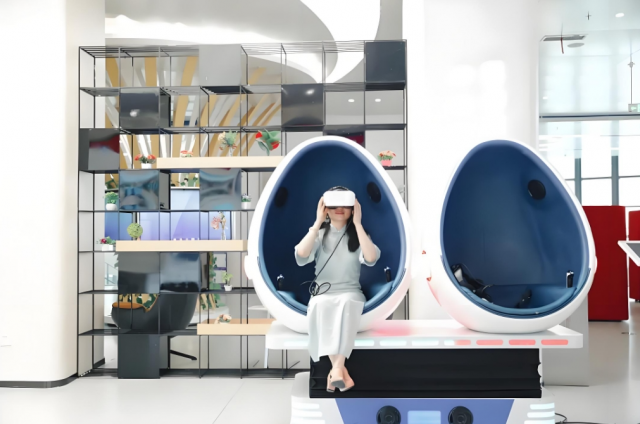 广丰区图书馆的数字化改造同样让人耳目一新。在“飞流直下”的电子书瀑布屏前,读者扫码操作就能将心仪图书带走;在新增的VR观影台上,孩子们正戴着设备“遨游”太阳系,惊叹声此起彼伏;电子书法桌轻点即变,读者能够入座体验弹琴、对弈、书法、绘画等一系列雅趣。
