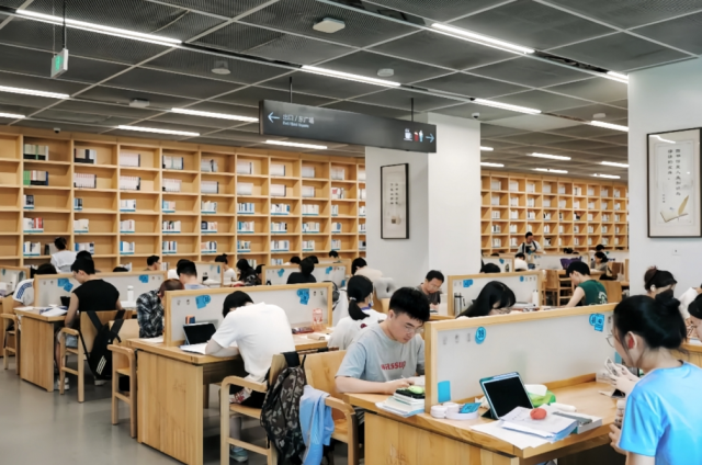 “在家容易分心,总想刷短视频,这儿大家都低头做题,氛围就像‘无形的监督’,效率更高。”应届毕业生廖云飞说。随着考研、考公、考证等热度的持续攀升,像他这样的备考族成了图书馆的常客——免费的公共空间、丰富的馆藏资源、稳定的空调与Wi-Fi供应,加上周围人伏案学习的沉浸式氛围,让图书馆成了性价比最高的自习场所。
