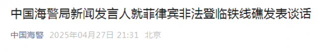 据中国海警27日消息,中国海警局新闻发言人就菲律宾非法登临铁线礁发表谈话。