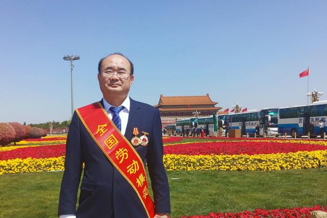 图为4月28日,获评“全国劳模”的武志刚在北京天安门广场留影。受访者供图