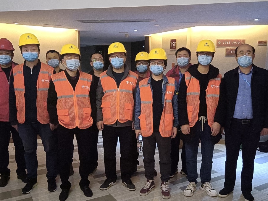 武志刚(右一)带领团队在抗疫一线保障通信专线(摄于2022年中国电信江西分公司供图)