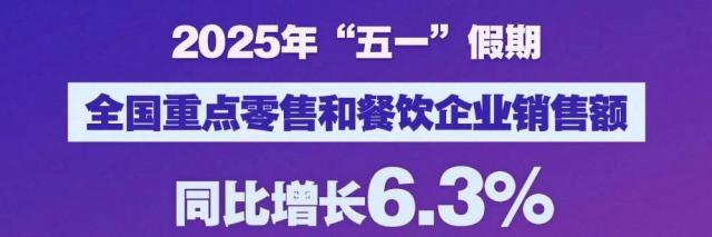 记者5月5日从商务部获悉,2025年“五一”假期,全国消费市场繁荣活跃。据商务部商务大数据监测,假期全国重点零售和餐饮企业销售额同比增长6.3%。