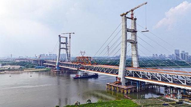 “五一”假期,昌九高铁南昌隆兴大桥建设工地传来喜讯:5月1日,随着重达764吨的合龙段钢箱桁梁精准吊装到位,由昌九城际铁路股份有限公司建设、中铁大桥局集团施工的昌九高铁控制性工程,创造6项世界第一的公铁大桥最后一节钢梁顺利吊装完成。至此,该桥控制性工程西支主桥钢梁已全部吊装完成,预计本月中旬实现合龙。