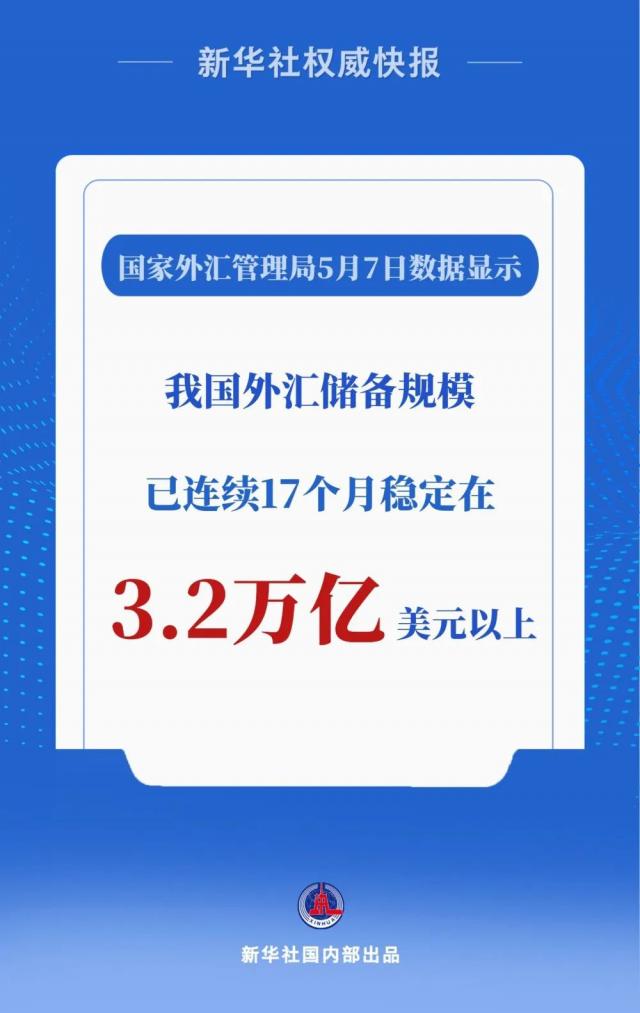 国家外汇管理局5月7日发布的统计数据显示,截至2025年4月末,我国外汇储备规模为32817亿美元,较3月末升幅为1.27%,已连续17个月稳定在3.2万亿美元以上。