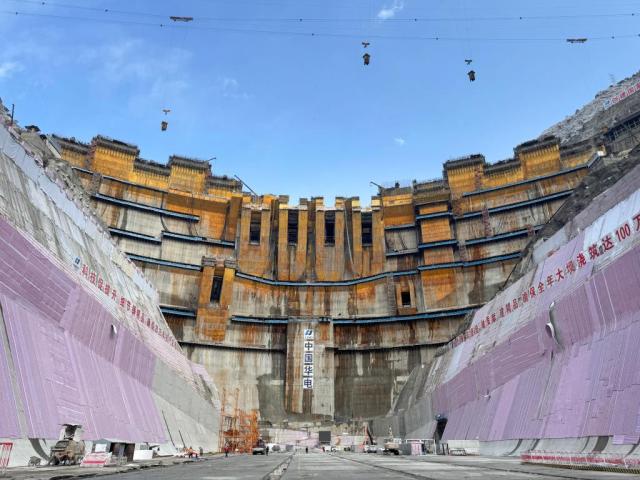 正在建设中的叶巴滩水电站混凝土双曲拱坝。(受访单位供图)