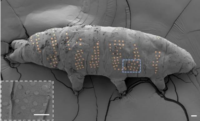在实验中,杨治蓉先让水熊虫进入具有强抗逆性的隐生状态,此时其代谢几乎停止。紧接着,她将特制的纳米有机冰膜覆盖在水熊虫身上。随后,经过电子束曝光,指定区域的纳米冰膜变为常温稳定的固体图案,水熊虫“纹身”成功了!