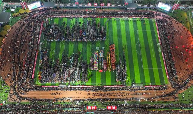 2025年贵州“村超”开幕式现场(2025年1月4日摄,无人机照片)。新华社记者 杨文斌摄