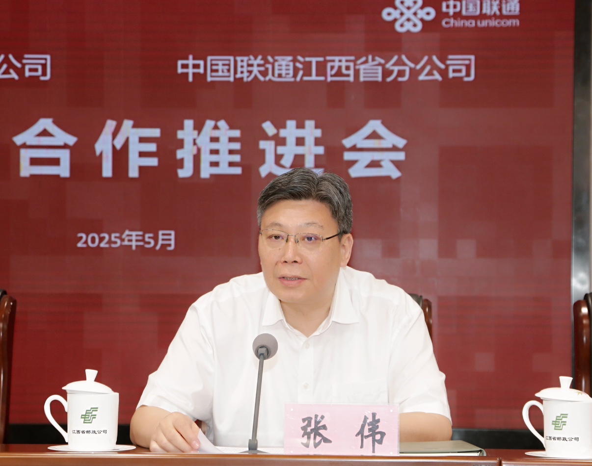 张伟对江西邮政一直以来对江西联通的关心支持表示感谢。他表示,中国邮政与中国联通血脉相连,多年来,双方始终秉持相同的服务理念,在创新探索中不断深化合作共识,为全方位战略合作奠定了坚实基础。本次合作,在集团领导的悉心指导与大力支持下,在前期三市六县试点取得良好成效的基础上,将围绕“金融、寄递、渠道、通信、云计算、大数据、智慧物流”等重点领域开展全方位、多层次的深度合作,打造“场景引流+生态运营”新模式,努力打造成为全国通信行业渠道“代办制”向“引流制”转型的标杆示范,为人民群众美好生活提供更优质的服务。