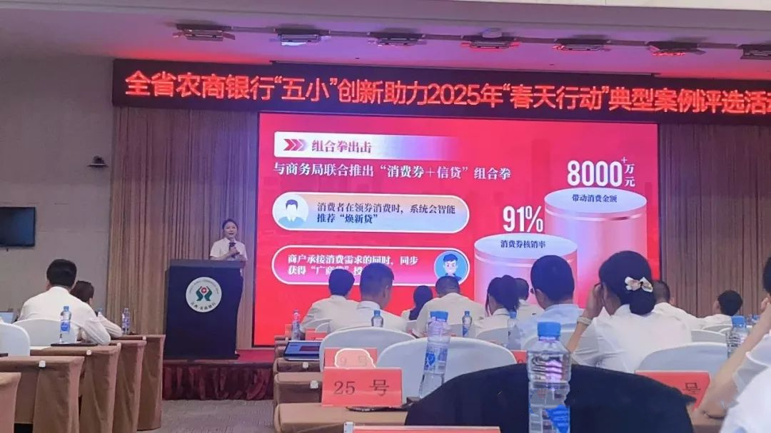 5月27日,全省农商银行“五小”创新活动助力2025年“春天行动”典型案例评选活动在西海培训基地举行,经过激烈角逐比拼,广丰农商银行《金融赋能,助力消费》小设计荣获二等奖。
