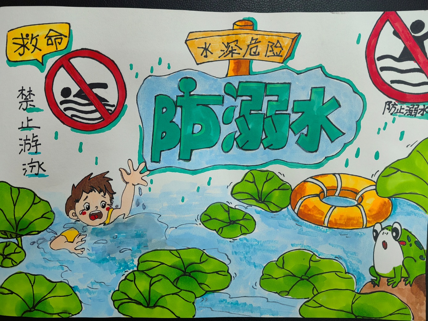 为激发学生的创造力和参与热情,学校组织了一场别开生面的“防溺水创意绘画比赛”。学生们围绕“珍爱生命,预防溺水”的主题,发挥想象力,用色彩斑斓的画笔描绘出一幅幅生动形象的防溺水宣传画。这些作品不仅展示了学生们对防溺水知识的理解,更传递了积极向上的生活态度和自我保护意识。此外,学校还布置了一项特别的家庭作业——制作防溺水手抄报。学生们利用课余时间,搜集资料、设计版面、精心绘制,创作出一张张内容丰富、设计精美的手抄报。这些作品不仅美化了教室环境,也是同学们之间交流防溺水知识的重要载体。学生们结合班级特色,以图文并茂的形式,生动展现了防溺水的相关知识,如安全游泳的规则、溺水时的自救技巧等,营造了浓厚的安全教育氛围。