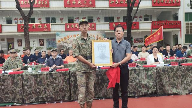 前不久,为重现肖汗尧烈士英容,于都县人武部、于都县退役军人事务局协调感动中国2007年度人物烈士孟祥斌的遗孀叶庆华和安徽师范大学“红色青春守护人”志愿者为肖汗尧勇士画像。“接到‘大渡河连’邀请我参加纪念强渡大渡河战斗胜利90周年大会的电话后,我决定将我伯父的画像赠给连队,帮他‘归队’。”肖香银眼含热泪说道。