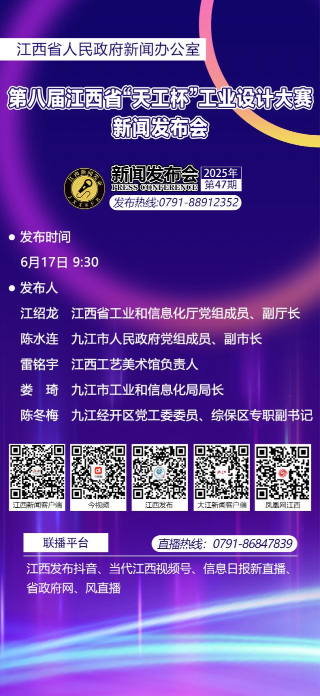 预告 | 明日9时30分江西省将举行第八届江西省“天工杯”工业设计大赛新闻发布会