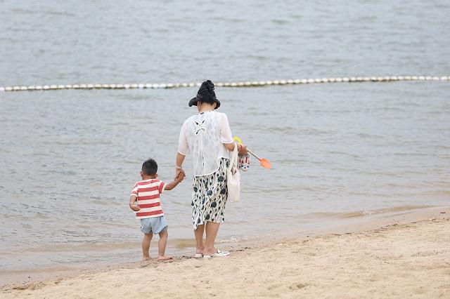 市民漫步于赣江 “两滩七湾”天然泳场沙滩