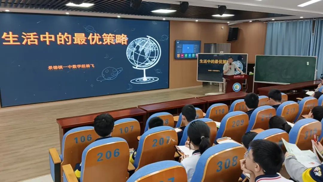 5 月21日,景德镇市第一中学杨飞老师带来《生活中的最优策略》讲座,以策梅洛定理为切入点,通过下棋博弈、纳什均衡等经典案例,将抽象数学理论融入现实决策场景。课堂上的拍卖互动环节,让学生亲身体验数学智慧在生活中的应用,现场气氛热烈。