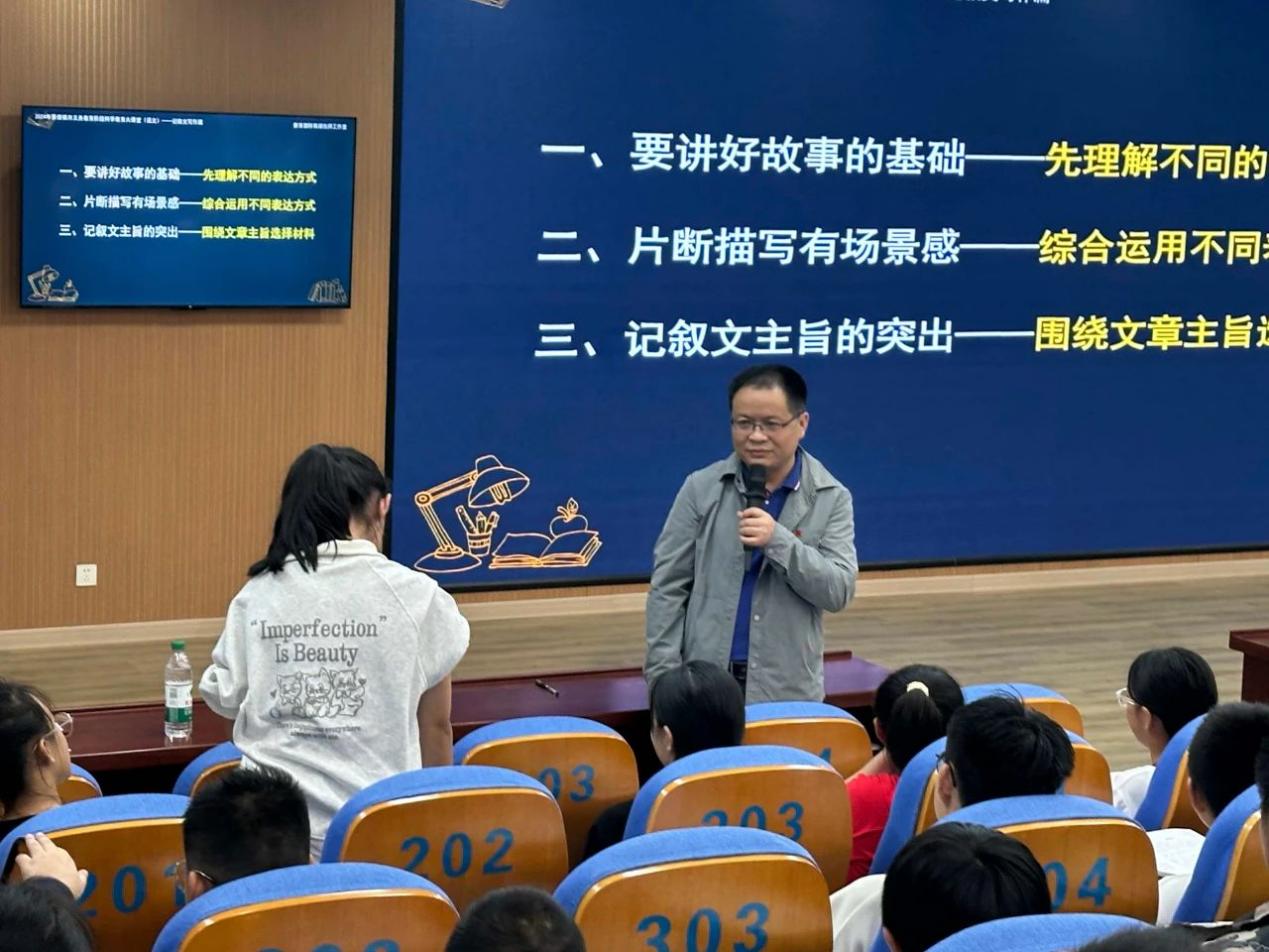 3 月19日,景德镇第十六中学何有湖老师带来《写出记叙文的场景感和主旨感》讲座。针对学生“缺素材、怕结构、语言平”三大写作痛点,何老师通过案例拆解与方法引导,带领学生攻克记叙文写作难关,现场激发了学生对语文学习的浓厚兴趣。