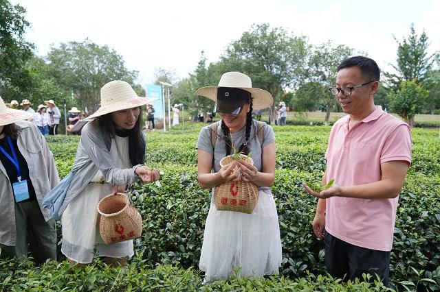 游客在武夷星茶业有限公司茶园采摘茶叶