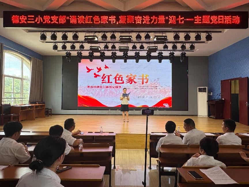 中国共产党成立104周年之际,为让红色基因融入血脉,铸牢信仰,7月1日下午,德安县第三小学党支部组织开展“诵读红色家书,凝聚奋进力量”迎“七一”主题党日活动,以革命先辈的深情文字为纽带,强化党员教师的使命担当。