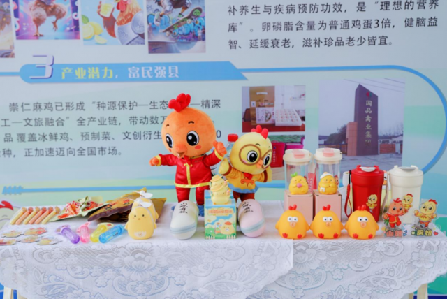 在崇仁,麻鸡不仅仅是食材,更是融入崇仁基因的文化符号。以麻鸡文化为核心的主题景区“山凤小镇”里,吉祥物“山娃”“凤妹”与游客热情互动,仿真麻鸡展示、美食道具引得游客驻足,麻鸡文创深得游客青睐,引得游客争相购买。专门建立的麻鸡博物馆,讲述了从唐代到现代的千年文化传承。下一步,博物馆准备安装VR设备,让大家能回到20世纪60年代看麻鸡被发现的场景。