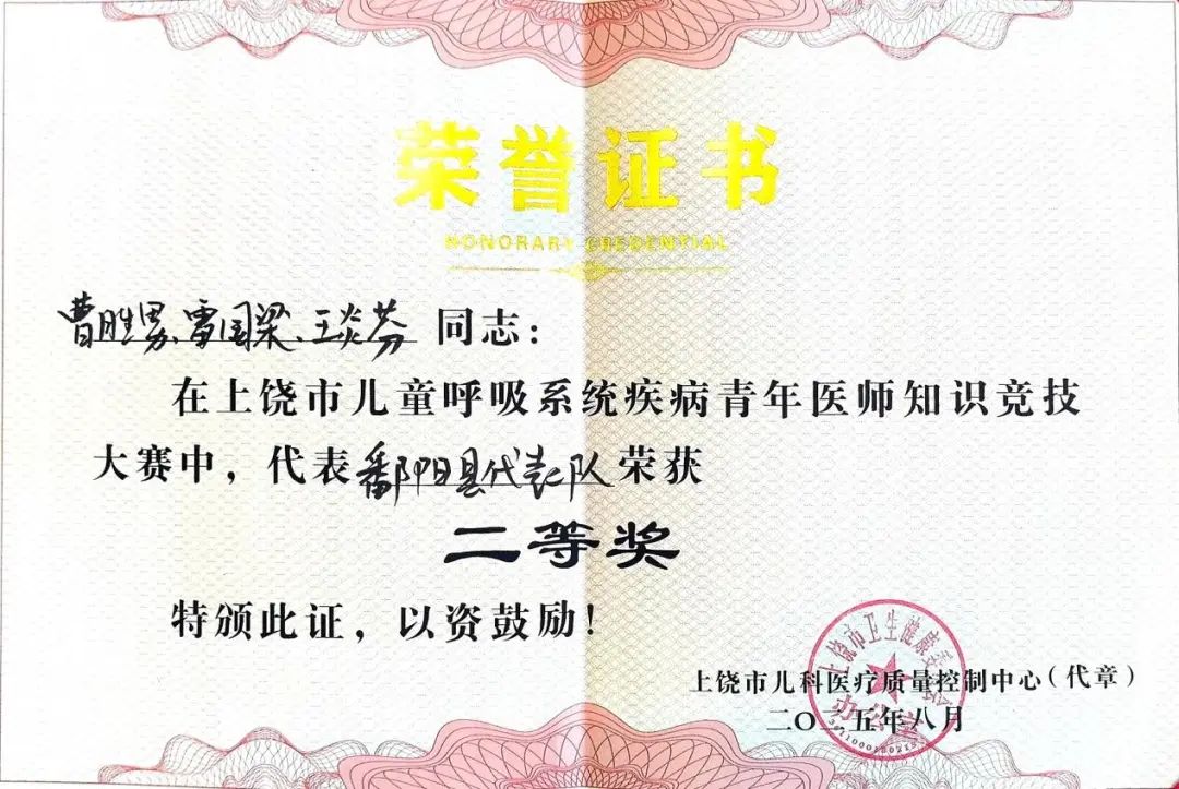 此次获奖,既是鄱阳县妇幼保健院儿科专业实力的生动体现,也彰显了医院在人才培养、学科建设方面的显著成效。未来,鄱阳县妇幼保健院儿科将以此为契机,继续加强学科建设,提升医护人员的专业素养和服务能力,为儿童健康事业贡献更大的力量,守护好每一位儿童的呼吸健康。同时也将鼓励更多医护人员参与专业竞技与学术交流,以赛促学、以学促干,为守护区域内妇女儿童健康贡献更大力量!