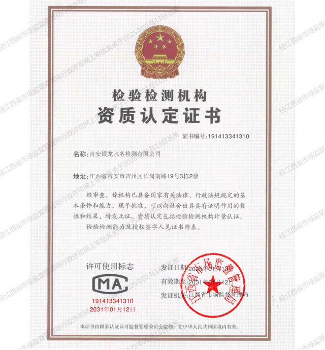 据悉,吉安银龙水务检测有限公司截至目前检验检测能力参数总量达96项,构建起了水和废水、生活饮用水、净水剂等领域检测体系,标志着公司检验技术能力迈上新台阶。下一步,吉安银龙水务检测有限公司将进一步加强实验室能力建设,不断拓展检测技术能力范围,继续秉持“科学管理、准确检测、精益求精、顾客满意”的质量方针,以优质的服务水平和精湛的技术能力,为各行业领域的高质量发展提供更加坚实的水质检测技术保障。