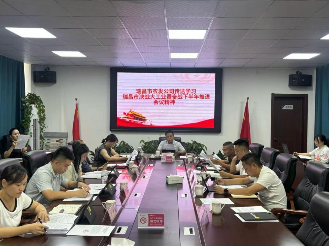 近日,瑞昌市农发公司组织召开专题会议,深入传达学习了全市决战大工业暨奋战下半年推进大会精神。会议聚焦核心要求,结合公司主责主业,研究部署贯彻落实举措,动员全体干部职工进一步统一思想、凝聚力量,将市委、市政府擘画的宏伟蓝图转化为推动农业高质量发展的生动实践与务实成效。