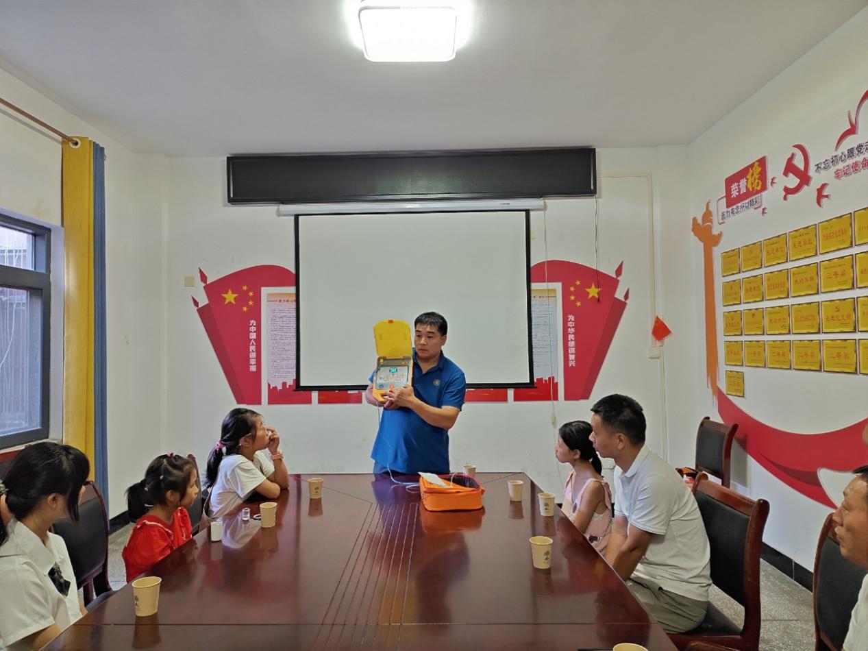 活动邀请了蓝天救援队的老师讲解了危险水域的类型,提醒居民远离危险水域,且家长一定要加强对儿童的监护,做到安全意识不放假,防患警觉不下线。接着,老师以互动形式,模拟当他人不幸落水时正确的救援方式,在保证自身安全的情况下,使用竹竿或救生绳等工具将落水人员拉上岸。在活动最后,老师普及了自动体外除颤仪的使用方式。